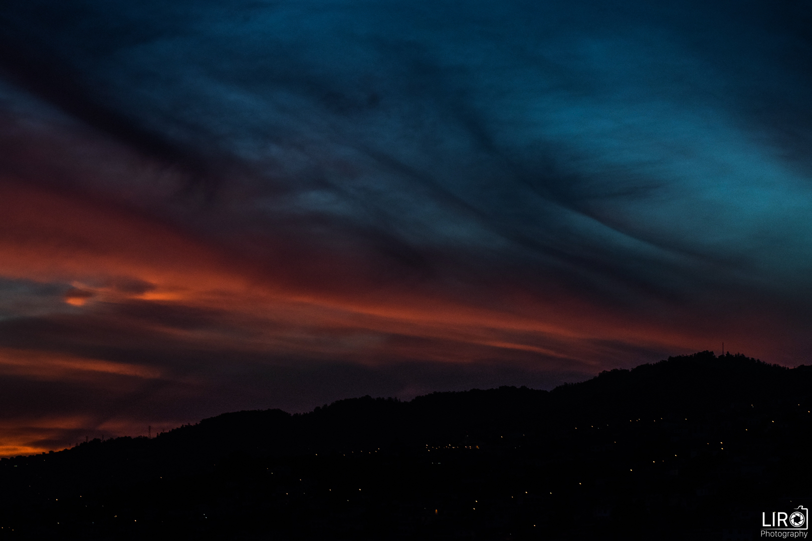 • Nuvens Arco-Íris - Pôr-do-sol the nuvens coloridas sobre a cidadeNuvens Arco-Íris