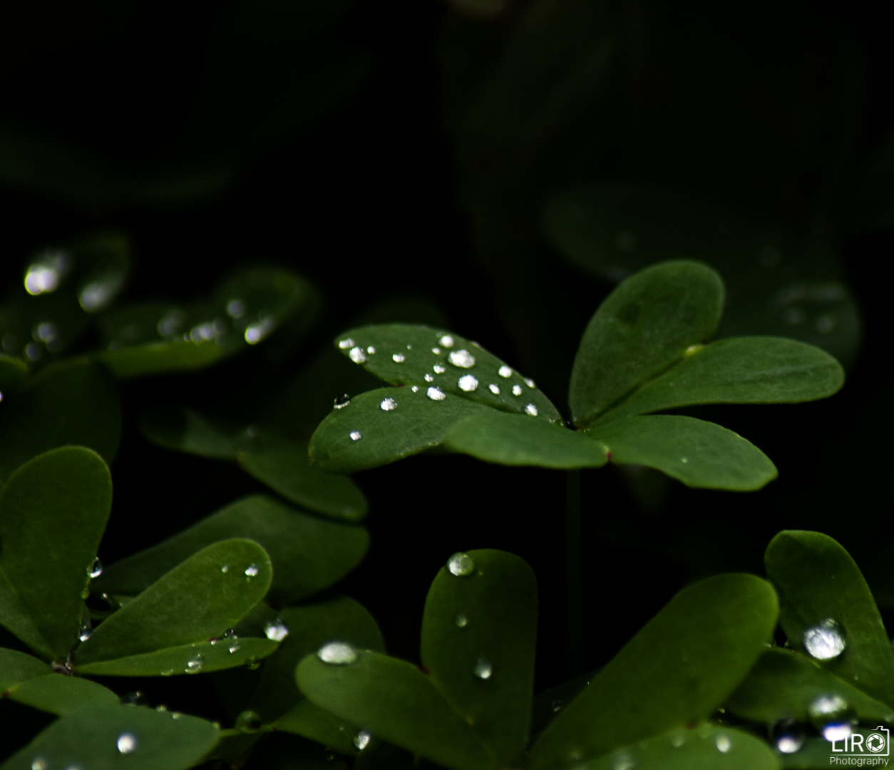 • Gotas - Gotas de água em cima de trevosGotas